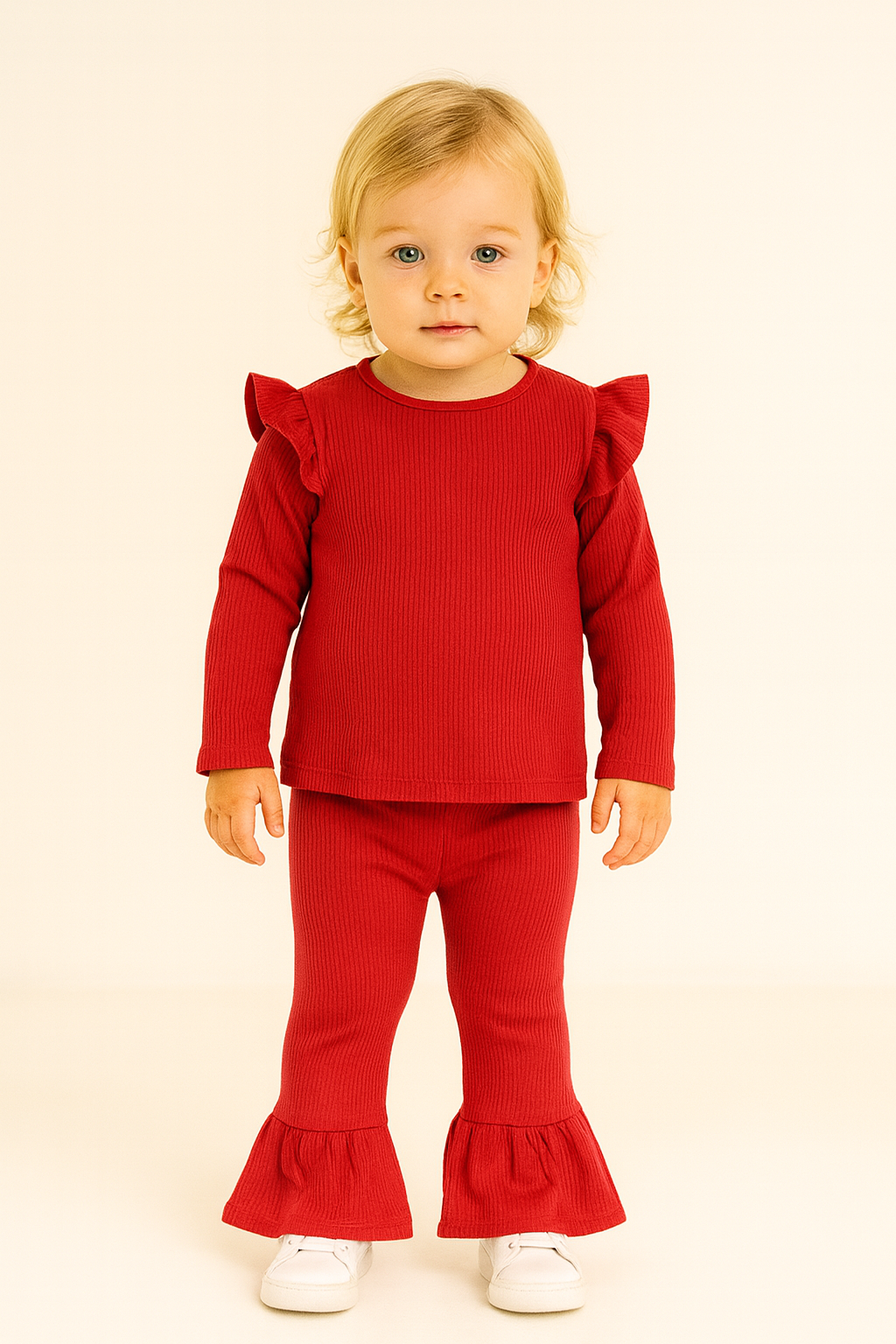 Triko Takım Alt-Üst Geniş Paça Kırmızı